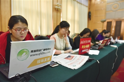 青海廣播電視臺運(yùn)用聲光畫為一體的優(yōu)勢,現(xiàn)場直播省十二屆人大六次會議、省政協(xié)十一屆五次會議開幕大會,除“青海新聞聯(lián)播”每日播出重點(diǎn)消息外,分別在“大美青?!焙汀敖磼呙琛睓谀块_設(shè)“兩會特別報(bào)道”,開設(shè)代表委員訪談節(jié)目。青海新聞網(wǎng)開設(shè)網(wǎng)民有話說、縣(區(qū))領(lǐng)導(dǎo)訪談錄、兩會新觀察、圖說兩會等欄目,并首次進(jìn)行融媒體報(bào)道,融合了音頻、視頻、文字、圖片、圖說等各種體裁,充分運(yùn)用全媒體陣營打好“兩會”宣傳組合拳。人民網(wǎng)青海頻道、新華網(wǎng)青海頻道充分發(fā)揮全媒體報(bào)道形式,運(yùn)用網(wǎng)絡(luò)媒體優(yōu)勢,拓寬新媒體表現(xiàn)手法,最大限度擴(kuò)大傳播覆蓋面。