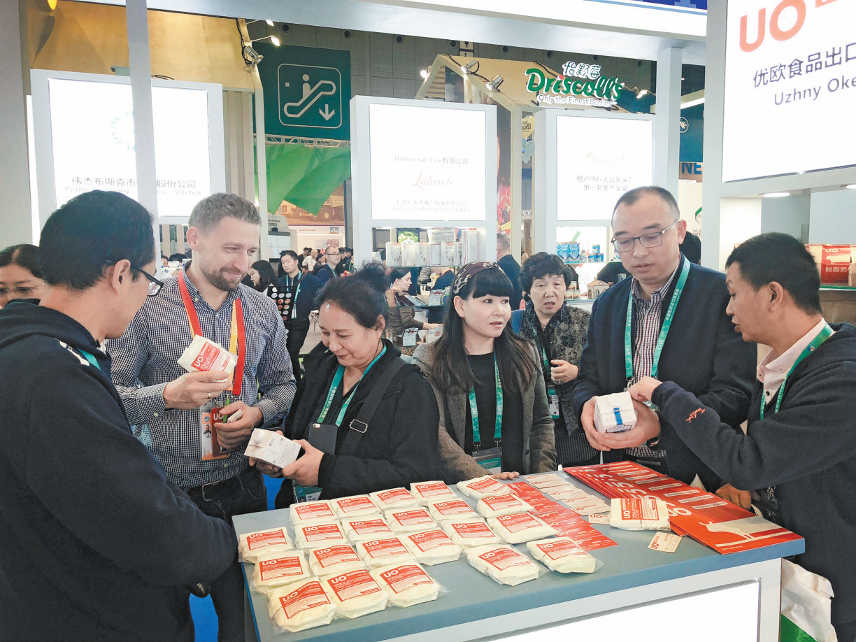11月8日,在首屆中國(guó)國(guó)際進(jìn)口博覽會(huì)7.2展館,青海企業(yè)與國(guó)外參展商交流洽談。