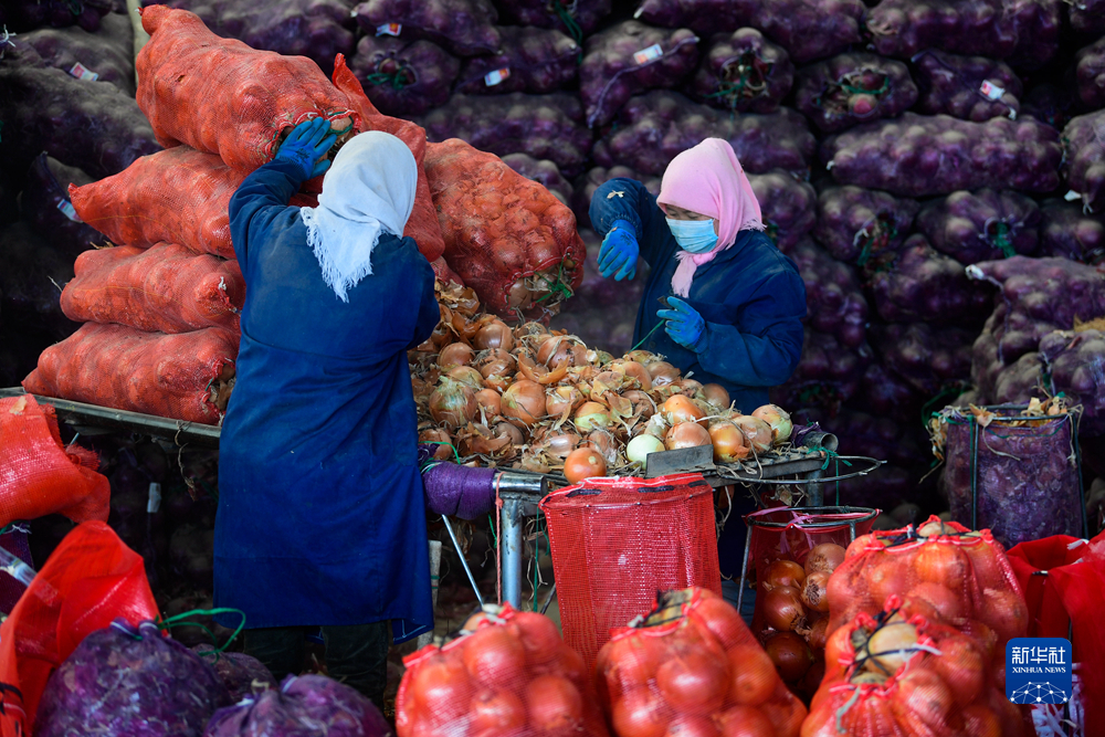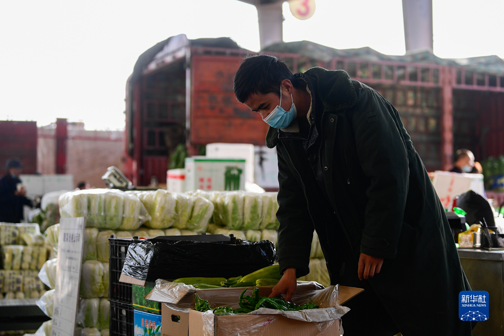 10月31日,商戶在西寧青藏高原農(nóng)副產(chǎn)品集散中心揀選蔬菜。新華社記者 張龍 攝