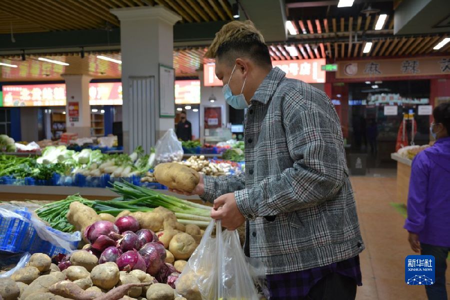 11月1日,西寧市民在鵬發(fā)智慧農(nóng)貿(mào)市場購買土豆。(新華社記者 李寧 攝)