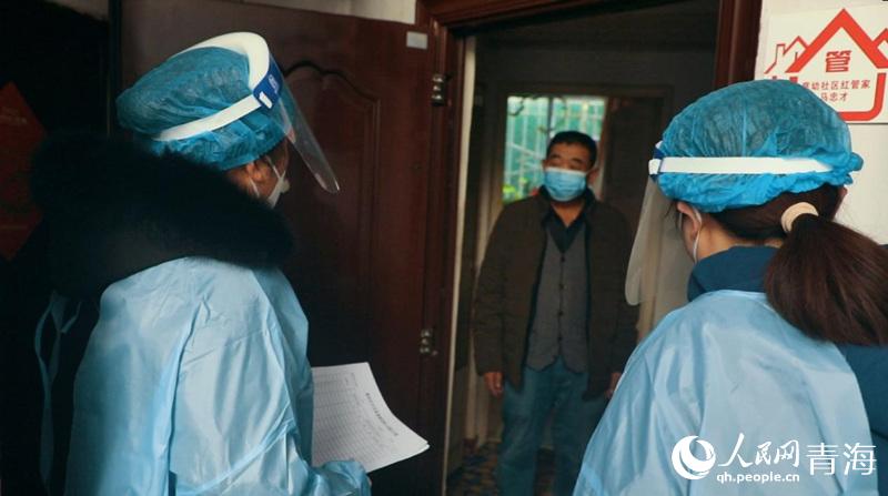 社區(qū)工作人員入戶了解情況。人民網(wǎng) 張皓芃攝