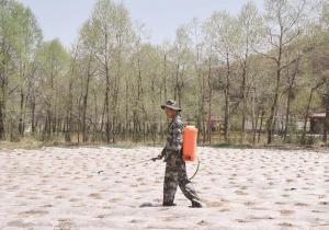 地膜之下,4月種植的馬鈴薯吐露出新芽,正等待著農(nóng)民將它們從塑料膜下放出,給予更多的生長空間。