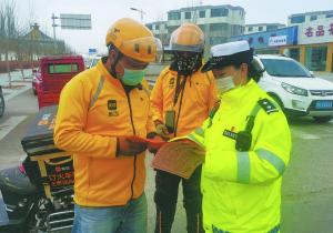 阿麗娟為市民講解“一盔一帶”宣傳活動(dòng)內(nèi)容。記者 張洪旭 攝