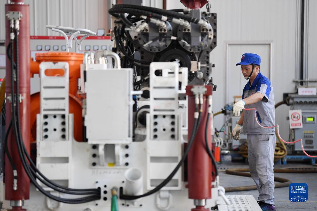 6月17日,在位于秦創(chuàng)原總窗口所在地陜西省西咸新區(qū)的陜西太合智能鉆探有限公司,工人準(zhǔn)備對(duì)智能定向鉆機(jī)進(jìn)行性能調(diào)試。 新華社記者 李一博 攝