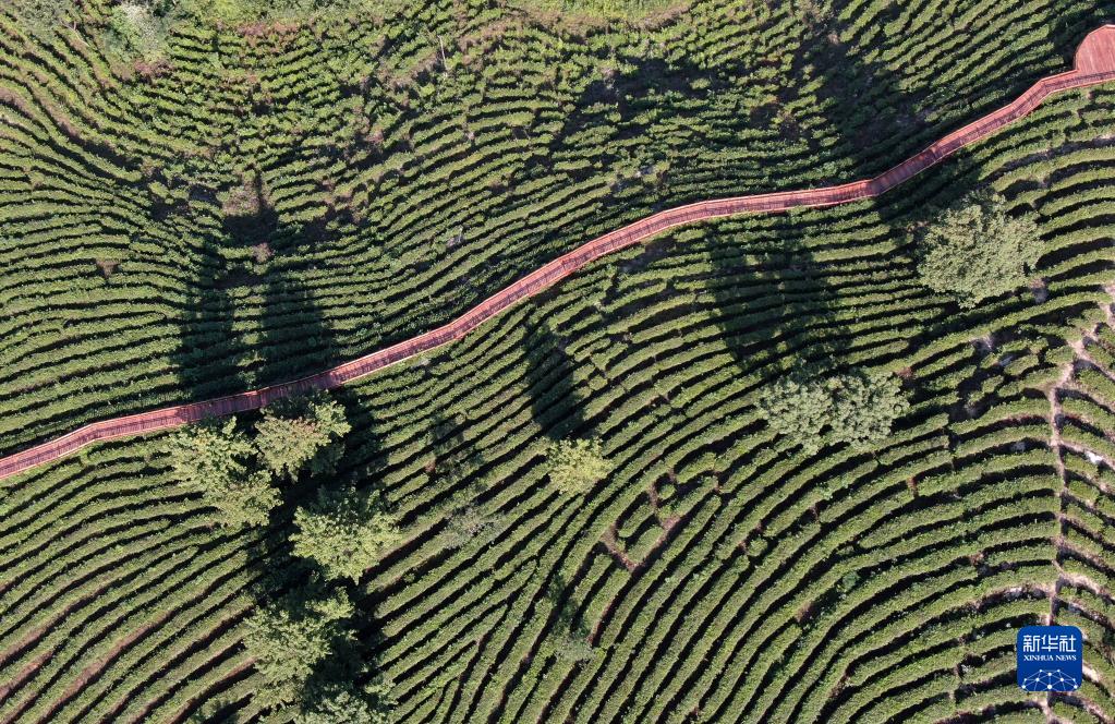 這是6月14日拍攝的陜西省平利縣老縣鎮(zhèn)蔣家坪茶園(無(wú)人機(jī)照片)。 新華社記者 李一博 攝