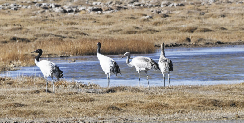 黑頸鶴漫步濕地