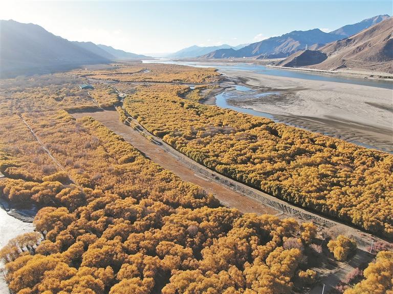 臨近山南市區(qū)的雅魯藏布江沿岸綠意蔥蘢的人造林。西藏日報記者 丹增平措 通訊員 次仁龍布 攝