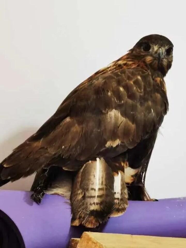 泉灣保護站工作人員接到電話第一時間前往救助,經(jīng)現(xiàn)場初步確認,受傷的是一只國家二級保護野生動物大鵟。經(jīng)工作人員仔細檢查,發(fā)現(xiàn)大鵟左翼輕微受傷,雨水浸濕無法行動,隨即將其帶回保護站,并上報共和管理分局及青海湖國家級自然保護區(qū)管理局。經(jīng)過保護站工作人員的精心喂養(yǎng),大鵟體能逐漸恢復。為了確保受傷的大鵟完全康復,泉灣保護站工作人員將其移交給青海湖國家級自然保護區(qū)管理局工作人員,送至青海野生動物救護繁育中心進行進一步治療,待大鵟傷勢痊愈、符合放生條件后再行放歸。