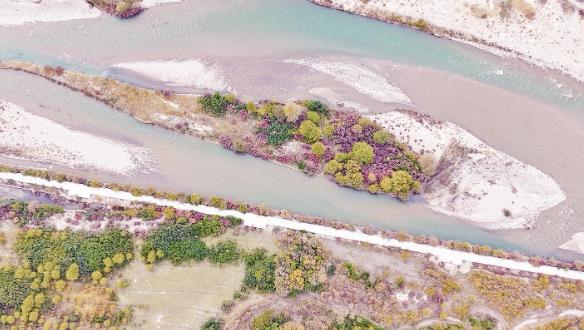 剛察縣沙柳河濕地一處淺灘形似一條大魚(yú)。
