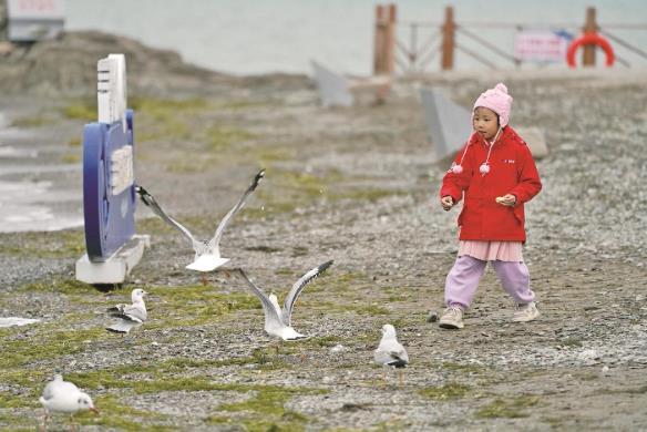 剛察縣圣泉灣濕地內(nèi),游客與漁鷗親密互動(dòng)。
