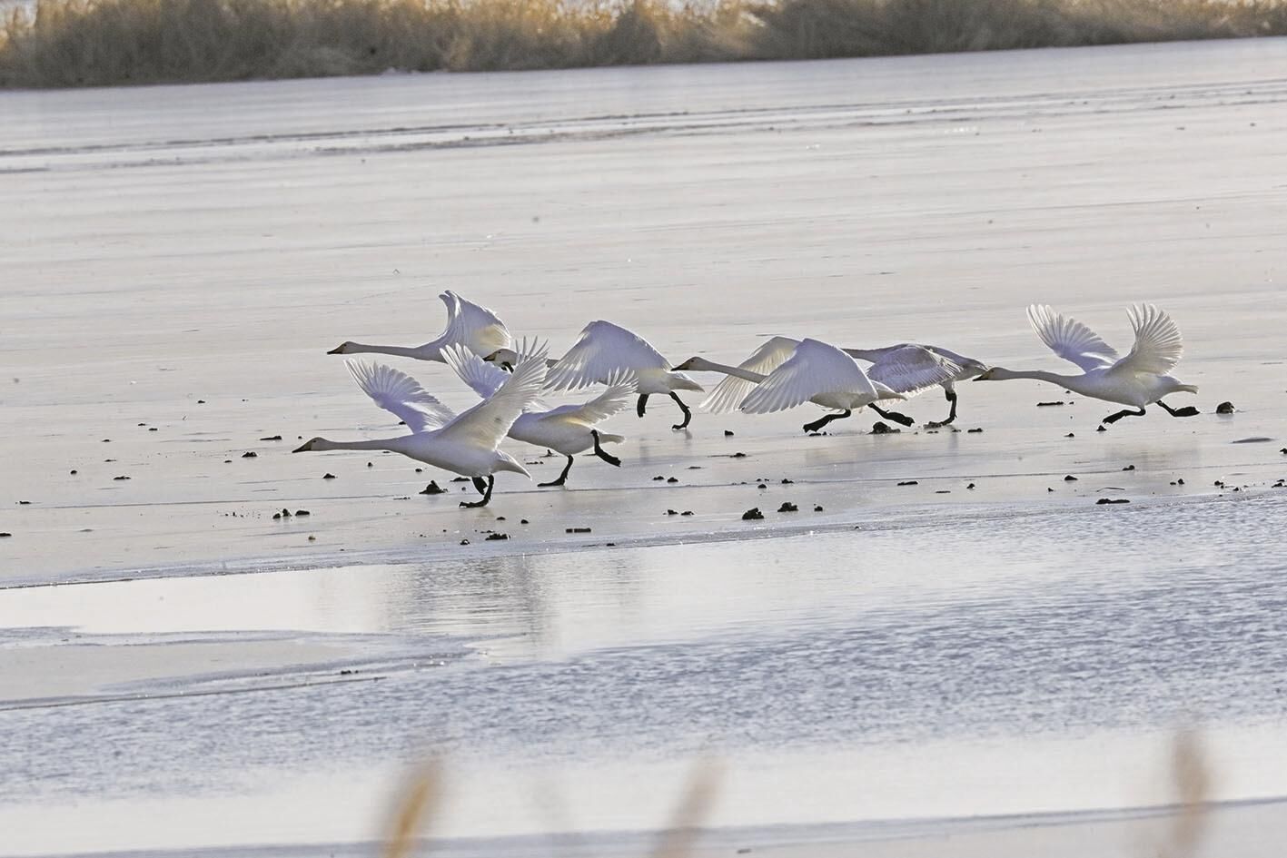 值得一提的是,今年首次監(jiān)測到黑頸鶴、灰鶴等鳥類在我省越冬,還監(jiān)測到紅胸秋沙鴨、普通燕鷗、西秧雞、流蘇鷸、鴻雁等越冬水鳥。同時(shí),在循化撒拉族自治縣黃河流域再次記錄到蒙古國烏布蘇省環(huán)志的大天鵝1T83,這已經(jīng)是我省連續(xù)14年監(jiān)測到該只大天鵝在我省黃河流域越冬的身影。
