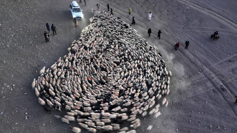 “每年趕羊前10天,村里家家戶戶都會(huì)開始準(zhǔn)備爐灰,爐灰是用來撒在冰面上防止羊群摔倒?!蓖颜f。雖然提前撒好了防止羊群打滑的爐灰,但還是會(huì)有頻繁打滑摔跟頭的羊,此時(shí)牧羊人就會(huì)扶它們起來,或背或抱,把它們送到目的地。