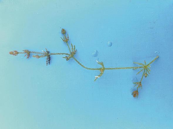 2023年7月至8月,省林業(yè)和草原局組織海西蒙古族藏族自治州都蘭縣林業(yè)和草原局、青海師范大學(xué)生命科學(xué)學(xué)院蘇旭教授團隊,在開展“青海野生單子葉植物種質(zhì)資源調(diào)查及其多樣性評價項目”的野外考察和群體遺傳學(xué)采樣時,于都蘭縣宗加鎮(zhèn)以北的荒漠草原發(fā)現(xiàn)一種形態(tài)較為特殊的藻類植物。通過查閱《中國植物志》《青海省植物志》等書籍,根據(jù)形態(tài)特征并經(jīng)有關(guān)專家核實,確認(rèn)為擬球狀輪藻,為青海省植物分布新記錄。