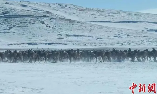 數(shù)百只白唇鹿黃河源頭整齊行進遷徙