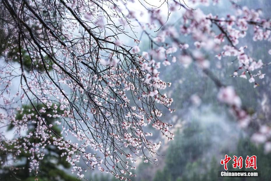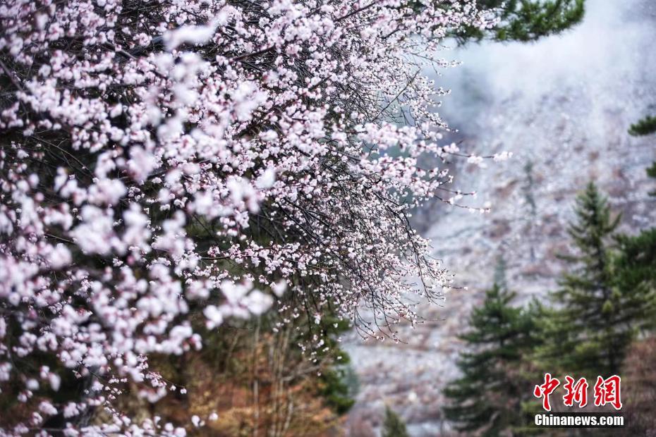 九寨溝景區(qū)盛開的野桃花。梁楓 攝