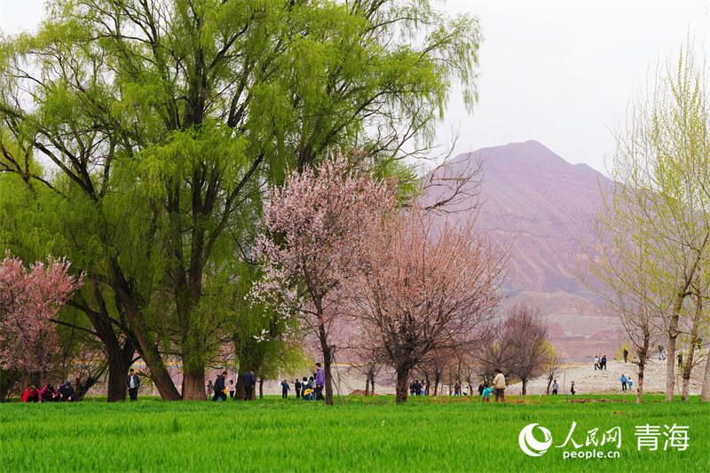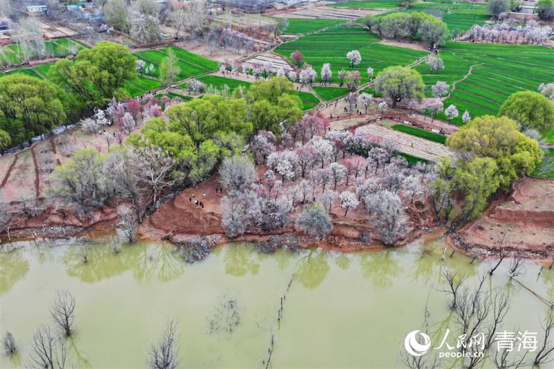 春日時節(jié),在青海省海東市循化撒拉族自治縣,黃河岸邊的杏花迎風(fēng)搖曳,為高原披上了春日盛裝。從空中俯瞰,粉色的杏花、綠油油的麥苗與蜿蜒的黃河交相輝映,春意盎然,景色如畫。游客紛紛拿起手機拍照留念,共賞杏花春色,共赴春日花約。