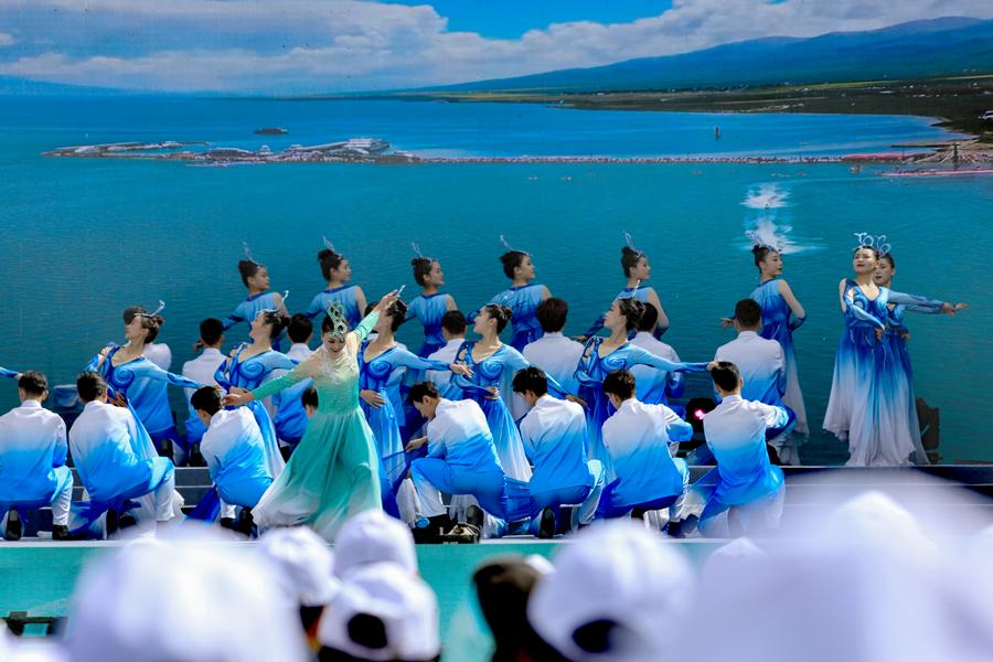 圖為“山宗水源·大美青?!贝杭疚幕糜蜗盗谢顒?dòng)暨海南·貴德第十八屆黃河文化旅游季開幕式現(xiàn)場。新華網(wǎng) 黃開森 攝