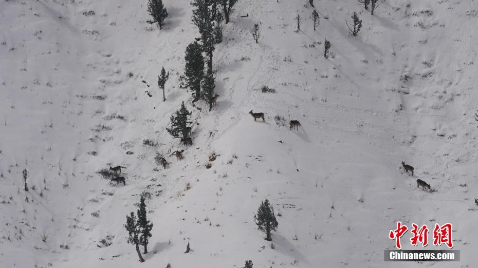 野生動物在雪地里奔跑。都蘭融媒 供圖