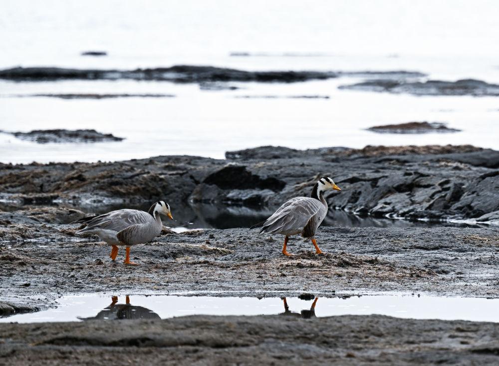 這是2024年4月11日在青海湖拍攝的斑頭雁。新華社記者 張龍 攝