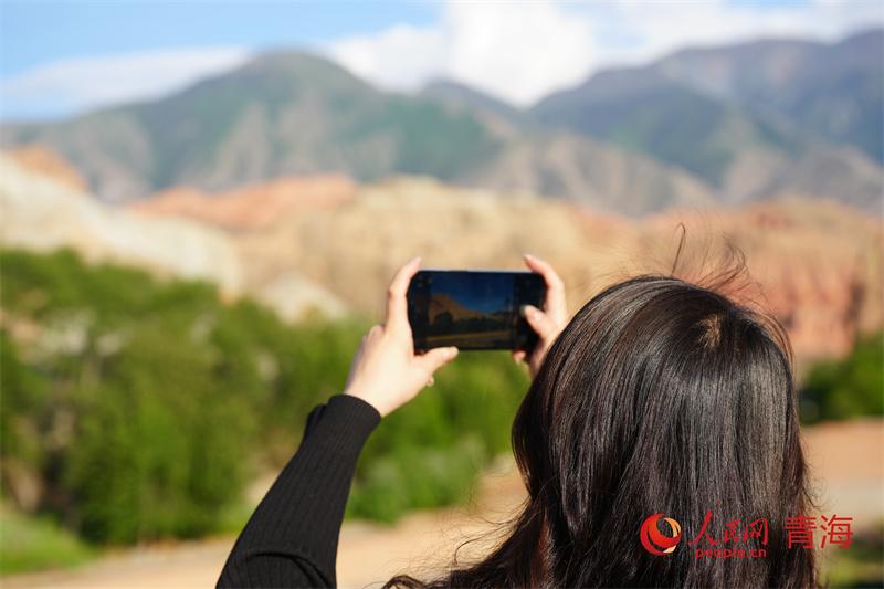 游客在青海貴德國家地質(zhì)公園拍照。人民網(wǎng)記者 甘海瓊 攝