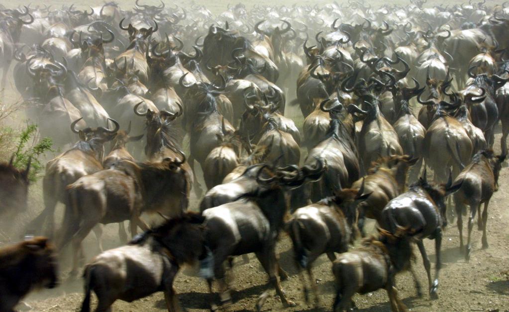 在千里之外的非洲,每年7月至9月,為了追逐水源和青草,數(shù)百萬頭角馬、斑馬和羚羊等食草動(dòng)物組成一支浩浩蕩蕩的遷徙大軍,從坦桑尼亞塞倫蓋蒂國家公園向肯尼亞馬賽馬拉國家保護(hù)區(qū)遷徙,這就是東非野生動(dòng)物大遷徙。當(dāng)數(shù)百萬頭野生動(dòng)物從面積廣闊達(dá)數(shù)萬平方公里的塞倫蓋蒂,遷徙到僅有不到2000平方公里的馬賽馬拉的時(shí)候,遷徙達(dá)到高潮。