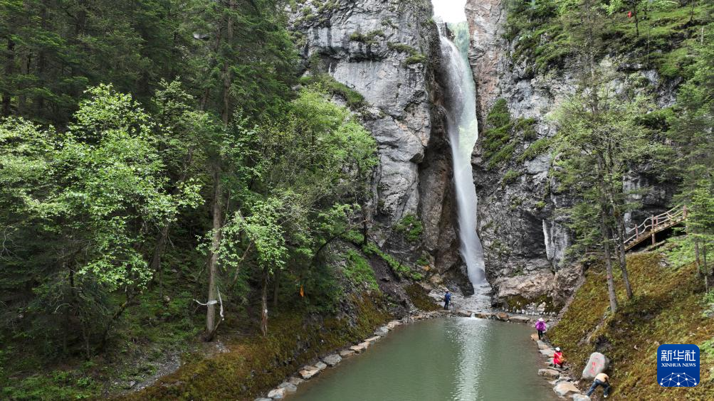 6月26日,游客在大峪溝景區(qū)內(nèi)游玩(無(wú)人機(jī)照片)。新華社記者 方欣 攝