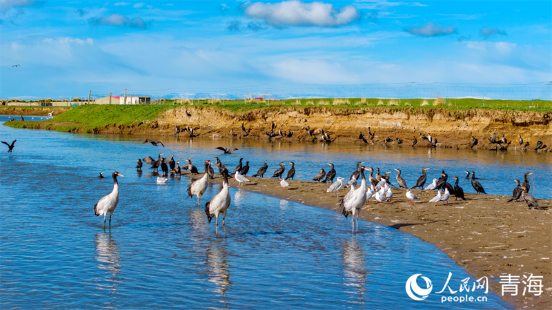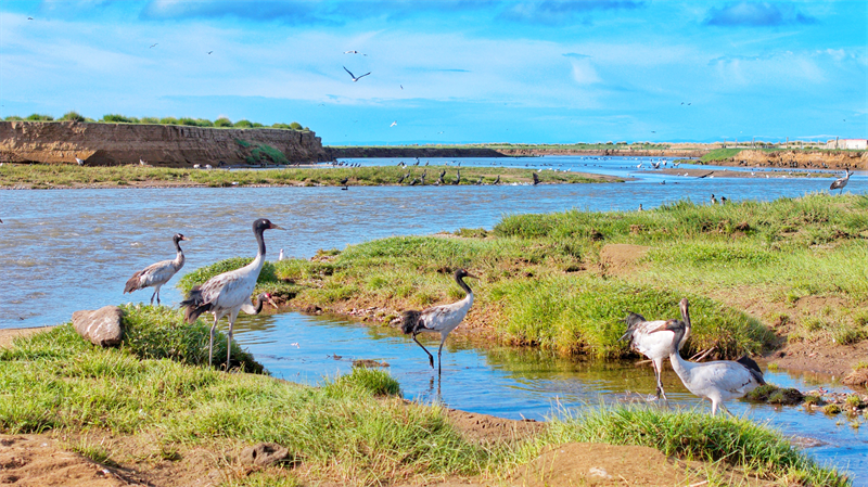 黑頸鶴的優(yōu)雅身姿格外出眾,它們在這片廣袤的草原上自由自在地徜徉,或低頭覓食,或展翅高飛,為這片濕地增添了幾分生機(jī)與活力。