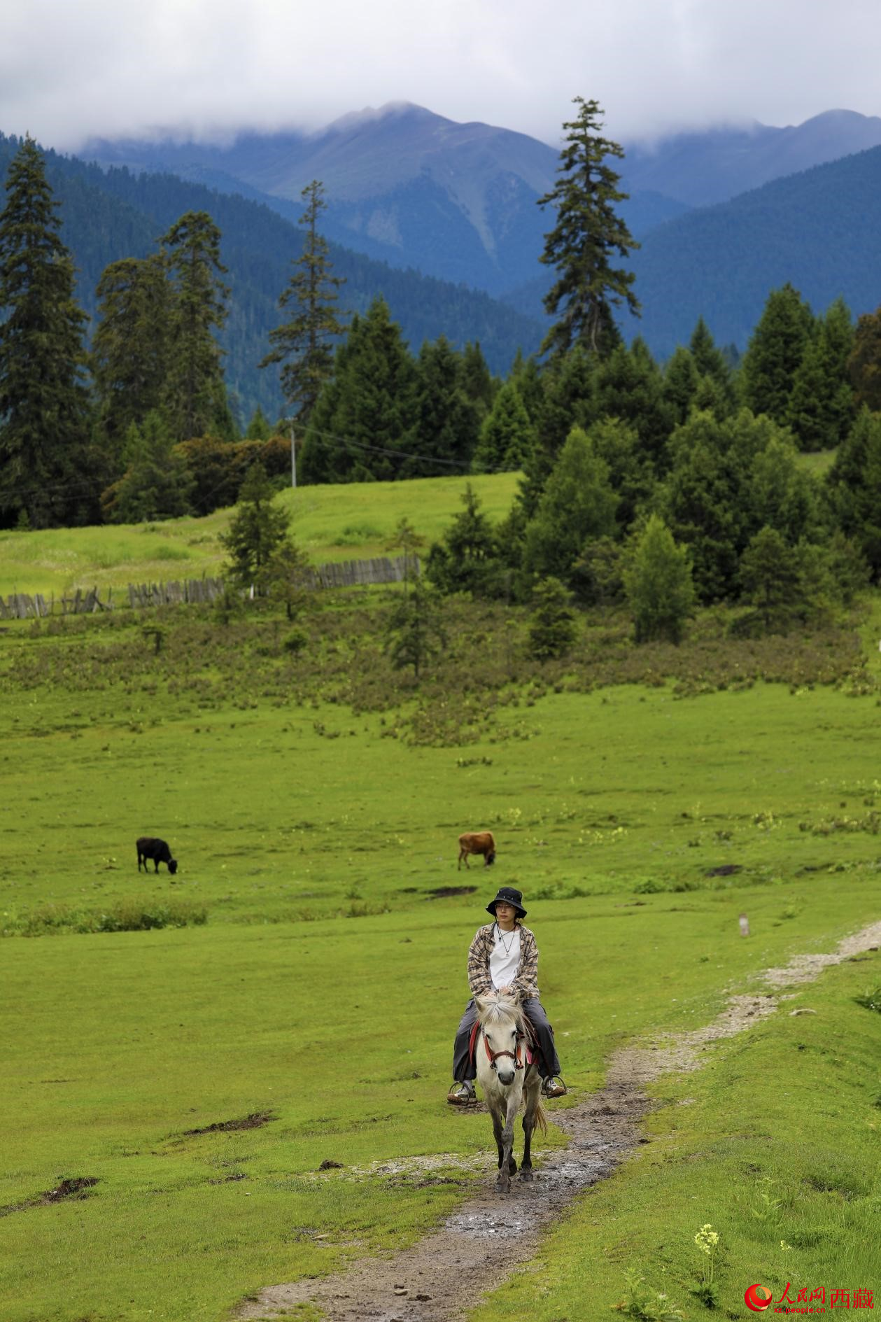 圖為游客在高山牧場(chǎng)景區(qū)體驗(yàn)騎馬。人民網(wǎng)記者 次仁羅布攝