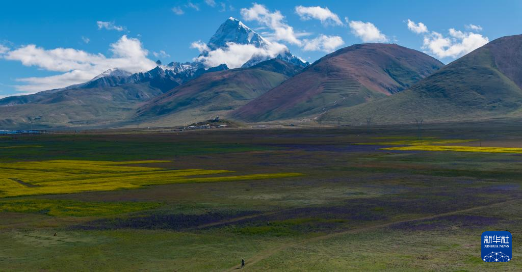 這是8月1日從帕里草原拍攝的卓木拉日雪山(無人機(jī)照片)。新華社記者 姜帆 攝