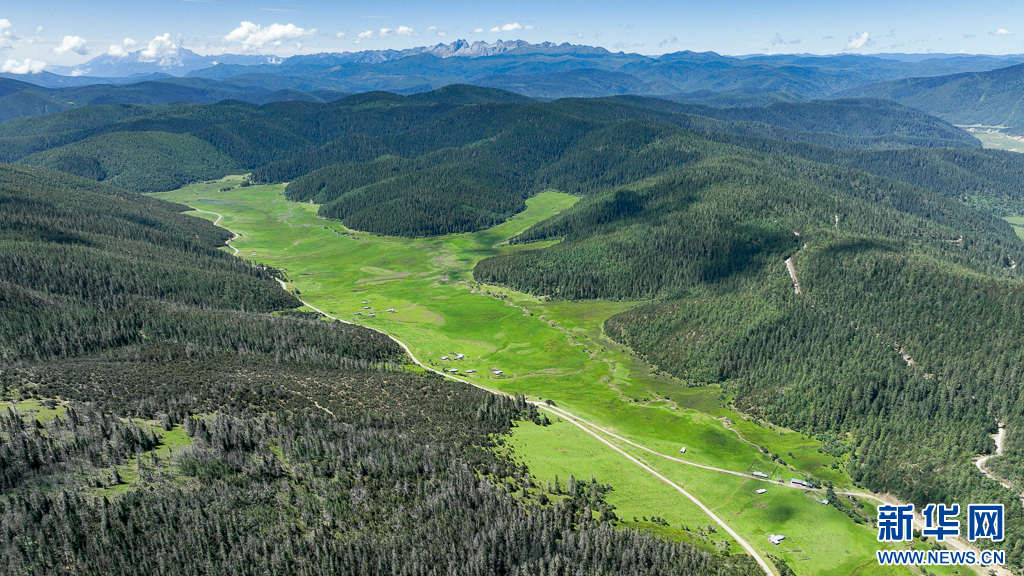 普達(dá)措景區(qū)中的牧場(7月31日攝)。新華網(wǎng) 劉東 攝