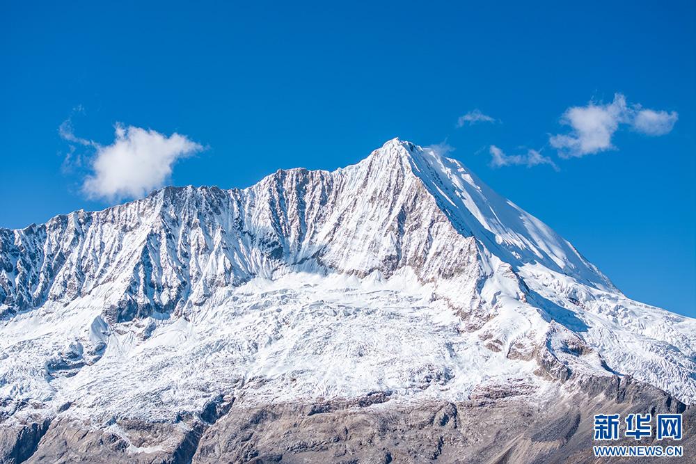 10月11日拍攝的庫拉崗日雪山(無人機照片)。新華網(wǎng) 旦增努布 攝