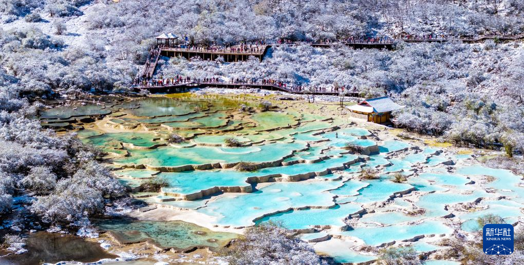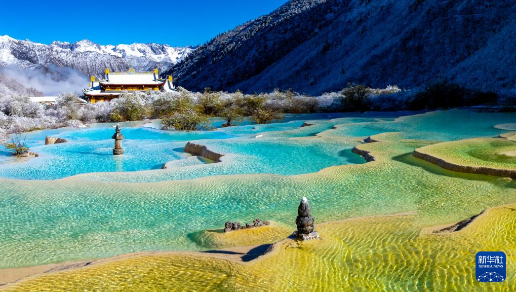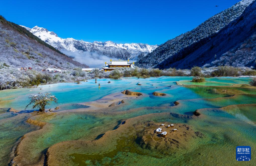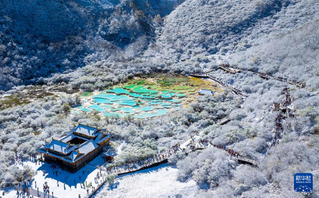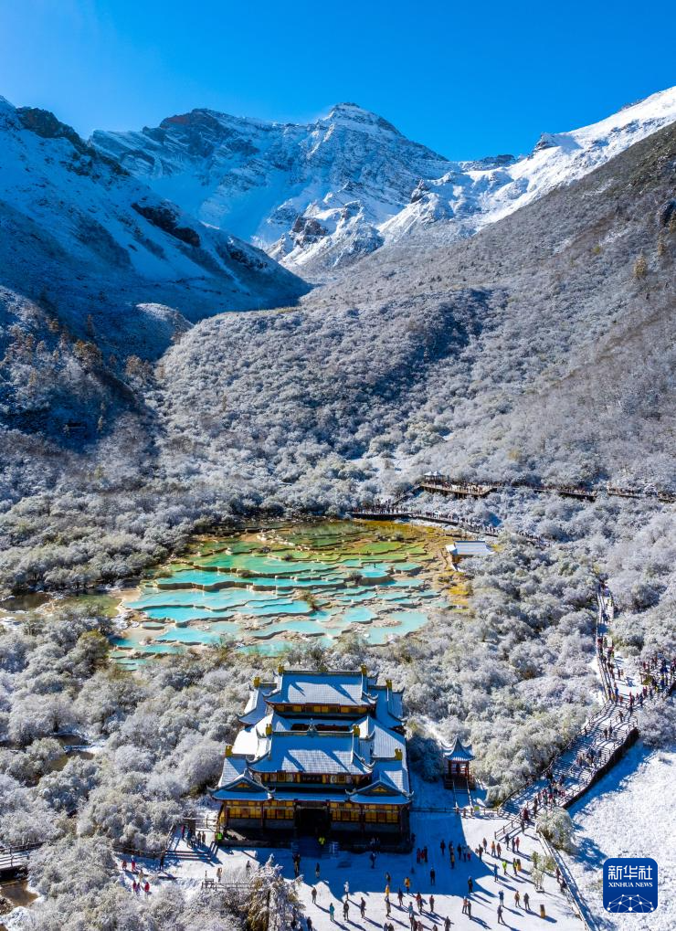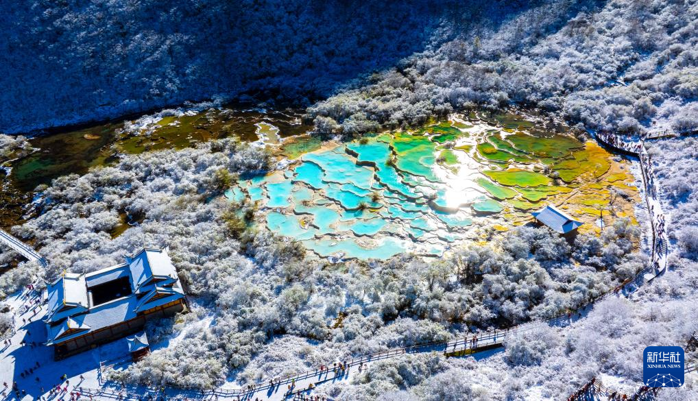 10月21日,四川省阿壩藏族羌族自治州黃龍景區(qū)迎來(lái)今秋第一場(chǎng)降雪,五彩池與皚皚白雪交相輝映,美不勝收。