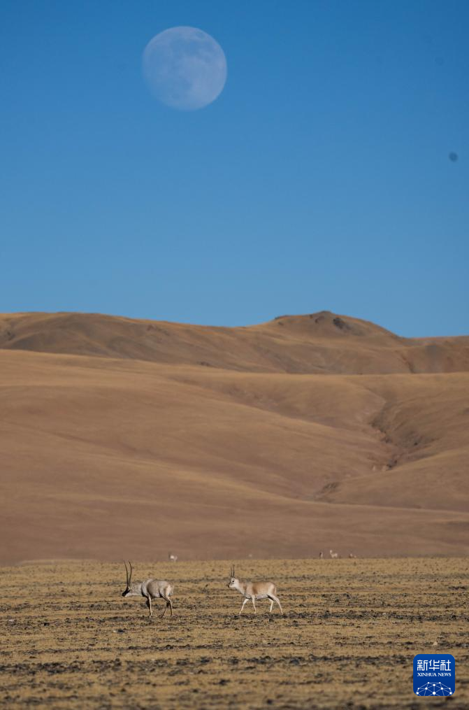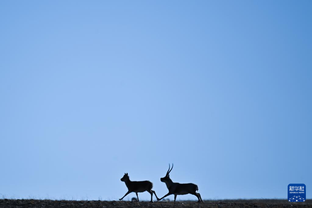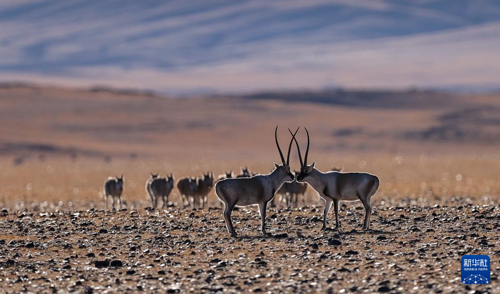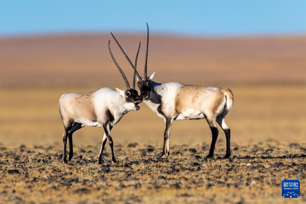 這是在羌塘國(guó)家級(jí)自然保護(hù)區(qū)拍攝的兩頭雄性藏羚羊(12月3日攝)。新華社記者 郭昱 攝