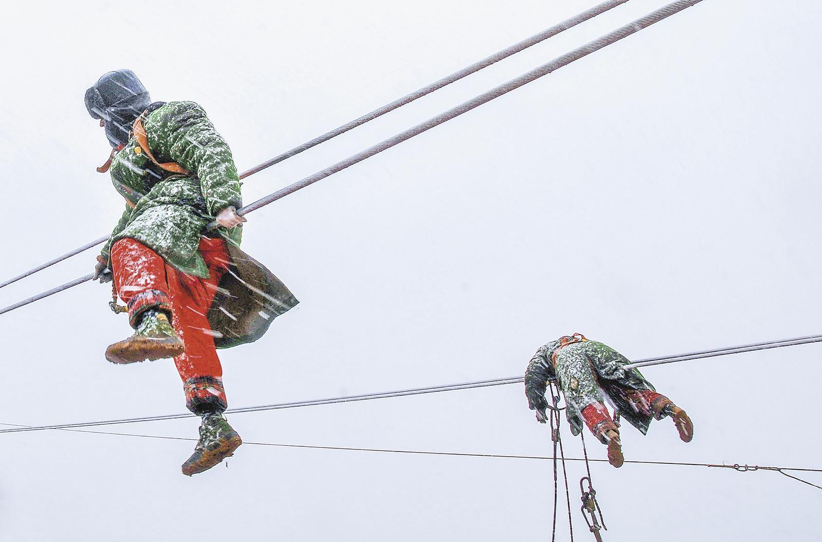 頂風(fēng)冒雪 貫通“電力天路”?!≡帧z