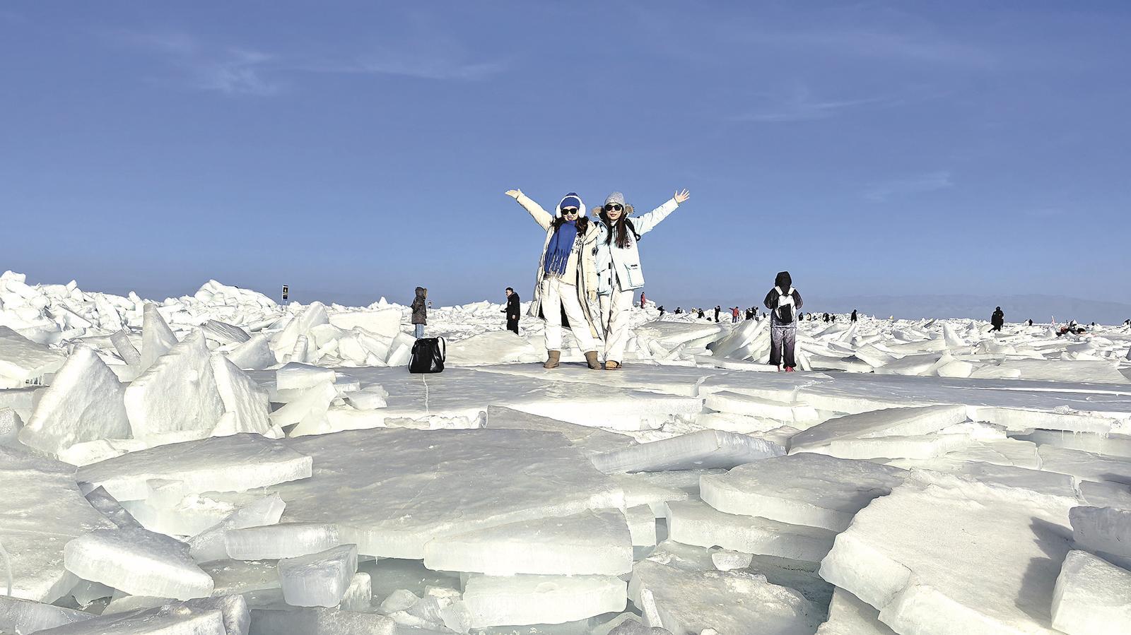 為提升游客體驗(yàn),景區(qū)匠心打造草垛藝術(shù)、雪丘景觀、藍(lán)冰盛景三重打卡亮點(diǎn),二郎劍半島的天然冰堆群更是成為藍(lán)冰觀賞的特色地標(biāo)。同時(shí),景區(qū)推出定制大巴游覽路線,隨車講解人員為游客科普冰形態(tài)原理;疊加文旅消費(fèi)券與門票優(yōu)惠政策,進(jìn)一步提升出行性價(jià)比;增設(shè)暖心服務(wù)站,為游客免費(fèi)提供姜茶、氧氣瓶等物資,全方位做好游覽服務(wù)工作。
