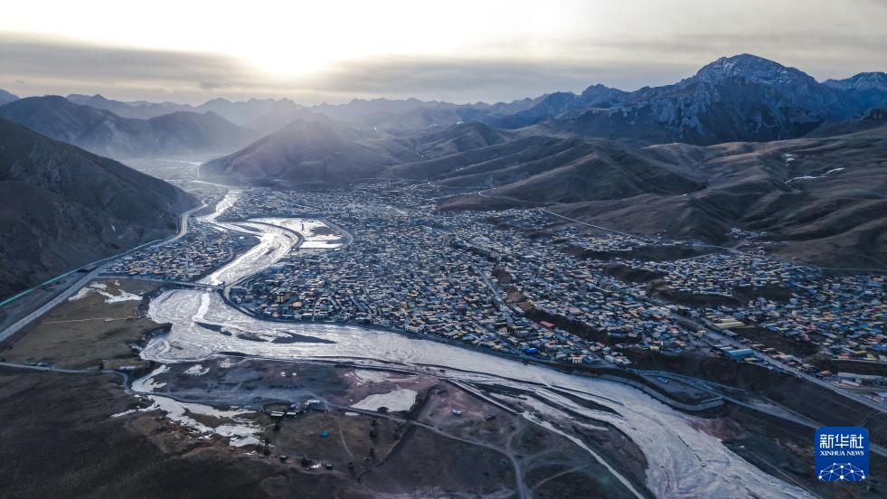 這是1月30日拍攝的青海省玉樹藏族自治州雜多縣冬景風(fēng)光(無人機照片)。新華社記者 齊芷玥 攝