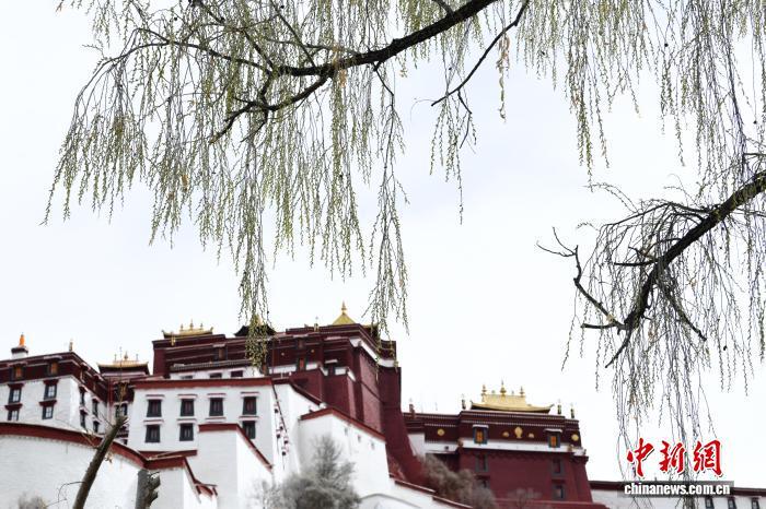 3月8日,西藏拉薩宗角祿康公園,楊柳發(fā)芽。陽春三月,古城拉薩桃花初放、生機(jī)盎然,春意漸濃。中新社記者 貢嘎來松 攝