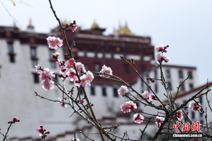 3月8日,西藏拉薩宗角祿康公園,桃花競相綻放。陽春三月,古城拉薩楊柳發(fā)芽、桃花初放,春意漸濃。中新社記者 貢嘎來松 攝