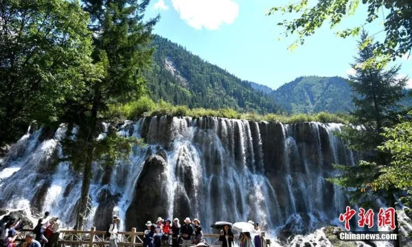 8月13日,世界自然遺產(chǎn)地九寨溝景區(qū)風(fēng)景如畫,吸引眾多游客觀光游玩。