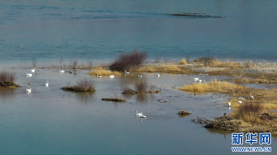 成群的大天鵝在水面上游弋,為冬日高原增添了勃勃生機(jī)。新華網(wǎng) 宋忠勇 攝