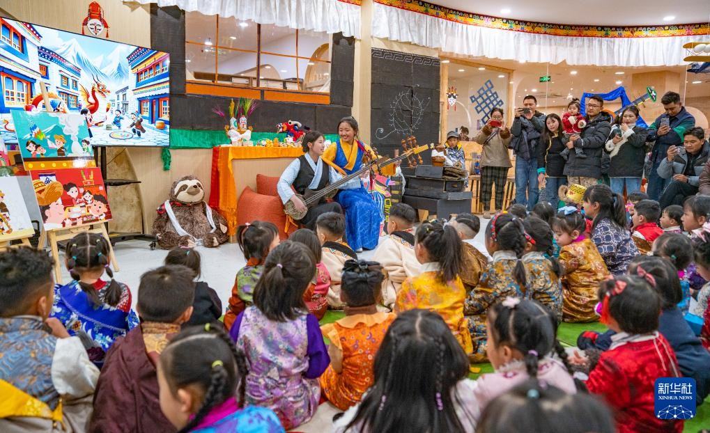 2月3日,手偶表演演員在拉薩的兒童藏裝派對(duì)上和孩子們互動(dòng)。新華社記者 丁增尼達(dá) 攝