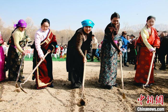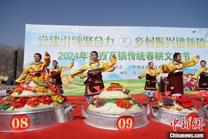 中國(guó)藏族網(wǎng)通訊 3月6日,青海省海南藏族自治州貴德縣拉西瓦鎮(zhèn)舉辦春耕文化節(jié)活動(dòng)。該鎮(zhèn)十個(gè)村的村民身穿節(jié)日盛裝,手捧制作精美、色彩鮮艷,寓意風(fēng)調(diào)雨順、五谷豐登的“彤糕”來(lái)到田間,以“二牛抬杠”的傳統(tǒng)方式開(kāi)啟今春“第一犁”。