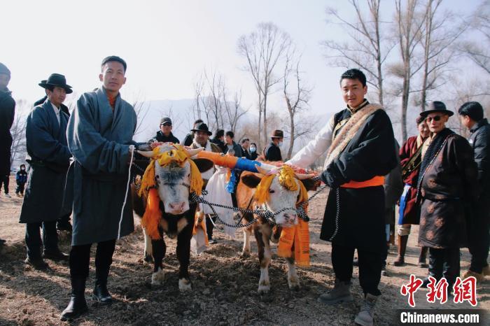 圖為藏族民眾用“二牛抬杠”的傳統(tǒng)方式開(kāi)啟新春“第一犁”。 童世鈺 攝