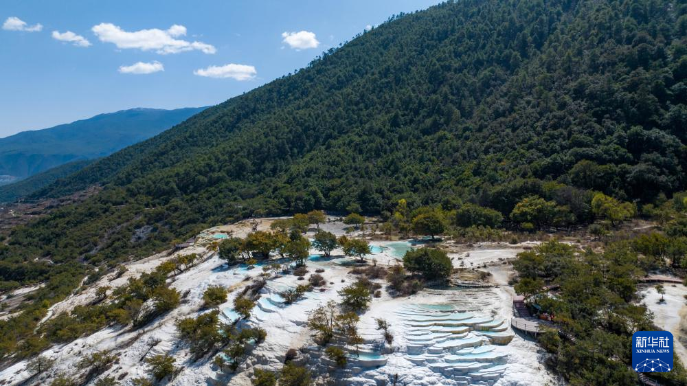 3月10日在香格里拉市三壩鄉(xiāng)拍攝的白水臺(tái)一景(無(wú)人機(jī)照片)。新華社記者 胡超 攝
