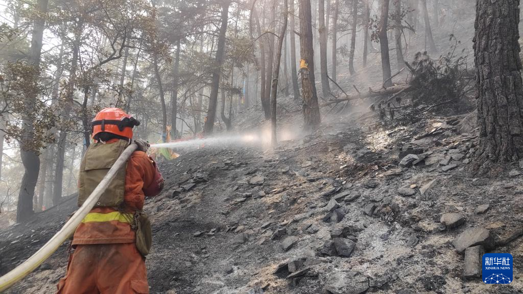 3月18日,消防員對(duì)雅江縣森林火災(zāi)1號(hào)火場(chǎng)進(jìn)行清理。新華社 黎錦暉 攝