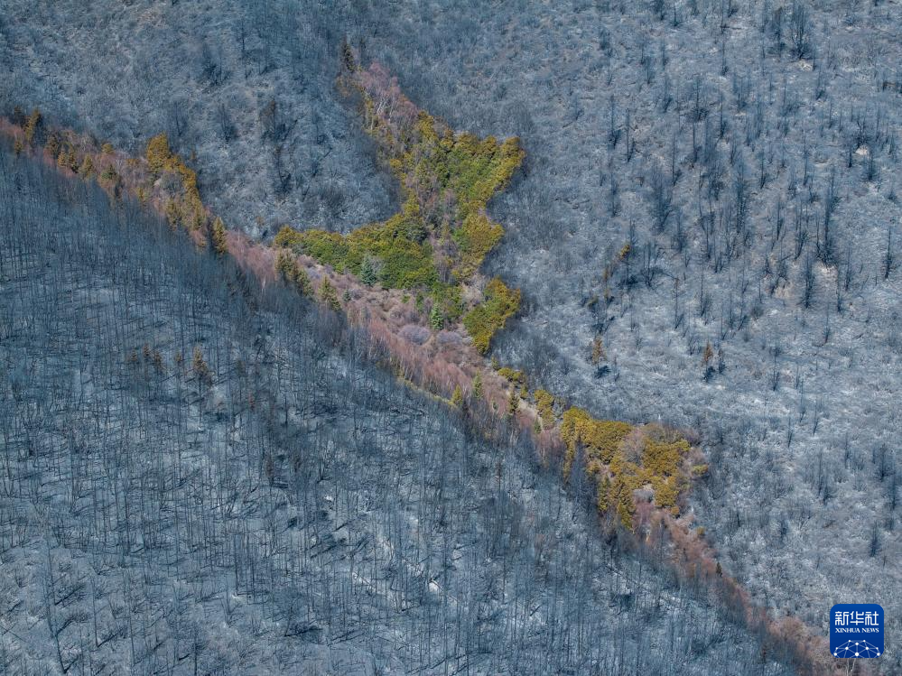 這是3月18日在雅江縣河口鎮(zhèn)拍攝的一處過(guò)火的森林。新華社記者 王曦 攝