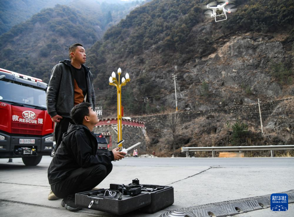 3月18日,雅江縣自然資源局的工作人員使用無(wú)人機(jī)偵查火情。新華社記者 王曦 攝