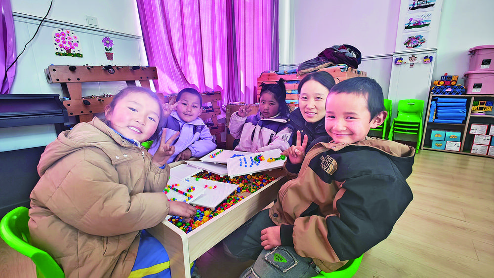 卻揚(yáng)多杰介紹,2019年政府投資1259萬元新建了教學(xué)樓、宿舍樓、食堂及操場(chǎng),還配套了相應(yīng)的教學(xué)及生活設(shè)施,同時(shí)還投資200萬元新建了幼兒園。目前小學(xué)有六個(gè)年級(jí)共121個(gè)學(xué)生,幼兒園有孩子79人?!暗轿覀冞@里上學(xué),學(xué)生什么都不用帶,人來就行,不管是學(xué)習(xí)用品還是生活用品,學(xué)校都會(huì)提供。幼兒園也是免費(fèi)上,但因?yàn)橛變簣@沒有餐食經(jīng)費(fèi),家長(zhǎng)送來的時(shí)候會(huì)給孩子帶午飯,老師也會(huì)悉心照顧孩子吃飯?!?/p>