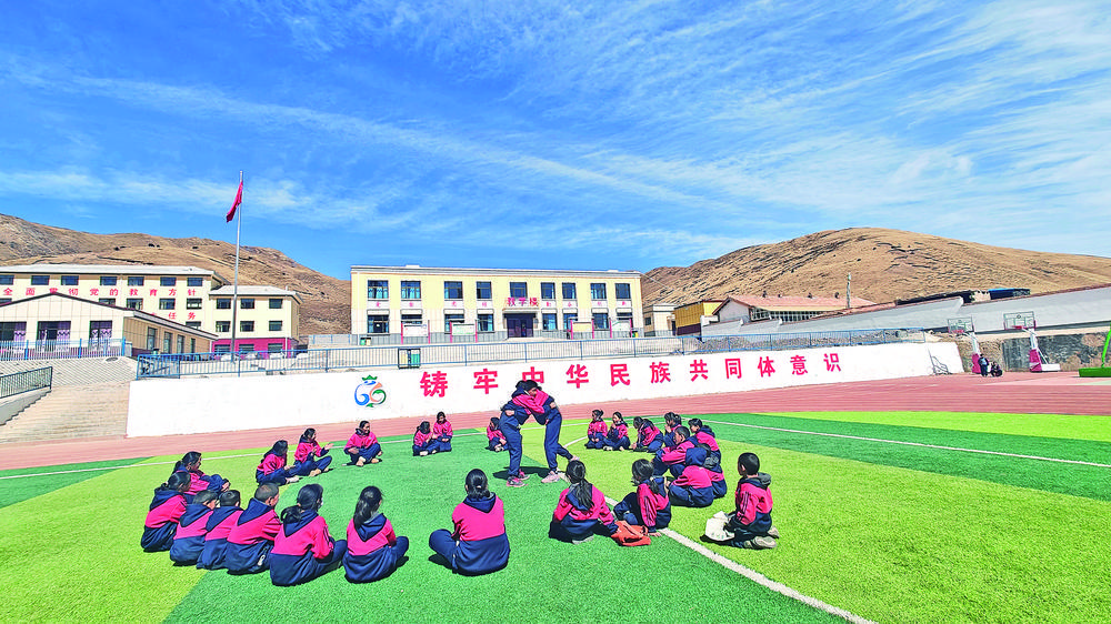 卻揚(yáng)多杰指著教學(xué)樓前一塊未施工的空地向記者介紹,這里是學(xué)校未來的籃球場(chǎng)?!邦A(yù)計(jì)4月份就能施工,孩子就要有專門的籃球場(chǎng)了。”