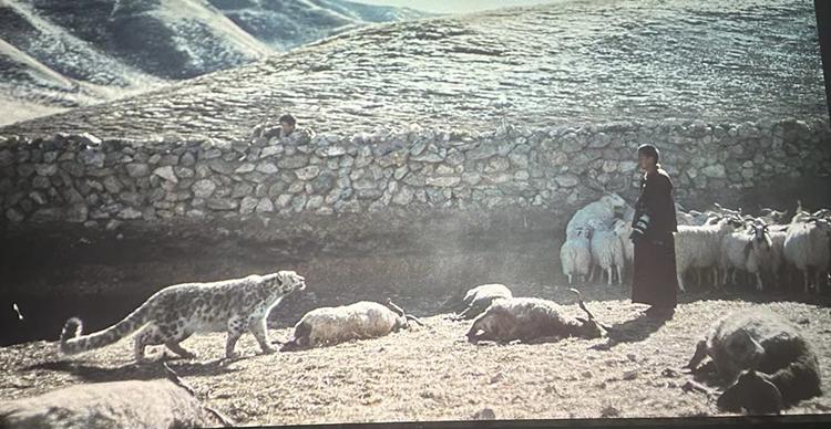 影片的結(jié)尾似乎很突然,雪豹終究沒有死在受損牧人暴怒的情緒和揮舞的錘子下,在人類文明的關(guān)照下,被主動(dòng)解圍,回歸雪山,與小雪豹相會(huì)相伴。只有萬導(dǎo)這種深邃包容、沉著冷靜又充滿睿智的作家、藝術(shù)家才能挖掘和表現(xiàn),這里蘊(yùn)含著生命的慈悲和世人的智慧。對(duì)此,我們還有哪些拷問呢?